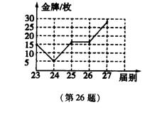 26.选择折线统计图,能更好地看出5届中国奥运金牌的变化曲线,如图.条形统计图侧重于各届金牌的多少.扇形统计图侧重于各届金牌在5届总金牌数中所占的比例.