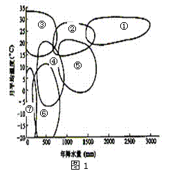 图1表示气温、降水与气候类型的关系。读图1回答28—30题。