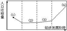 28.图中显示了人口迁移和经济发展之间的关系。其中,阶段(2)最有可能的时期是