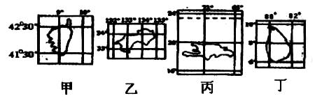 1、在上列四幅图中,比例尺最大的是: