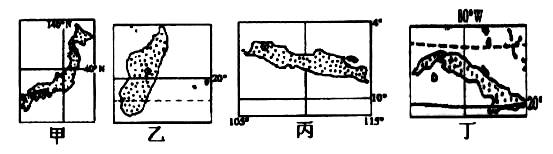 2、在上列四幅图中,乙图所示地区位于丁图所示地区的: