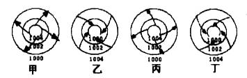 19、上图中表示北半球气旋的是: