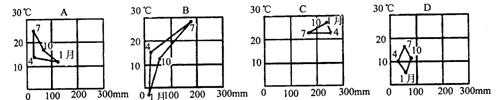 15、图五中四幅图分别代表一种气候类型,哪幅图代表温带海洋性气候