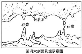 32、(13分)读“某洞穴剖面景观示意图”,完成下列要求。