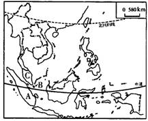 (3)图中两国的首都:A为____________,B为____________;东西两侧海域的名称:C为____________;D为____________。