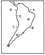 36.读南美洲轮廓图,回答下列问题。