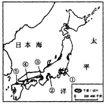 (1)填写日本主要工业区的名称① 、② 、③ 、④ 、⑤ 。