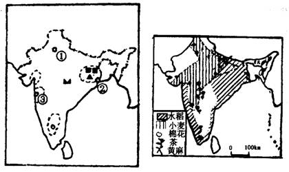 A 从印度农作物分布图中可以看出,水稻主要分布在 ,小麦主要分布在 。