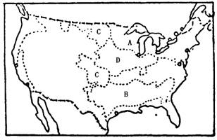 (2)图中字母所代表的美国农业带(区)名称: