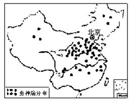 32.读“中国虫神庙与明代蝗灾频率分布图”,回答: