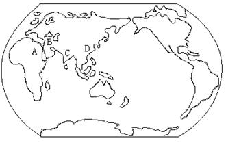 (1)图中A、B、C、D分别表示世界四处主要的文化源地,其中A为_______文化源地,B为_______文化源地,C为_______文化源地,D为_______文化源地。按文化源地分类,他们都属于_______源地。