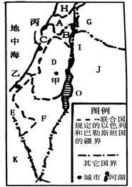 33.读中东部分地区各国示意图,回答问题。(8分)