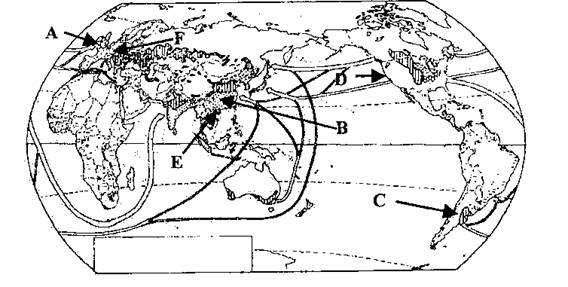 (3)在D、E、F三个工业区中,属传统工业为主的是       ,属新兴工业为主的是           ,其中区位选择的主导因素为科学技术的是      ,第二次技术革命后兴起的是      ,新技术革命后兴起的是