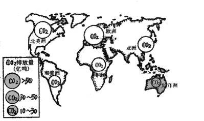 3.读“世界各大洲工业二氧化碳排放量”示意图和“世界二氧化碳排放量最多的十国”柱状图及有关资料,回答问题(10分)