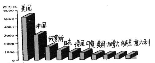 (2)下图十国中,二氧化碳排放量最多的国家是       ,最少的亚洲国家是