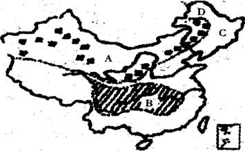 32。读我国造林重点区域分布图,回答下列问题。(8分)