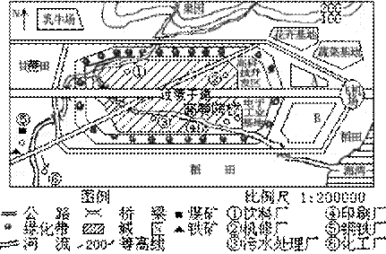 (3)污水处理厂( 1分)、过境干道( 1分)