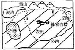 (3)为了发展该地的旅游业,拟在A、B两条线路中选一条修建公路,请据图中信息分析两条线路的优缺点。(2分)