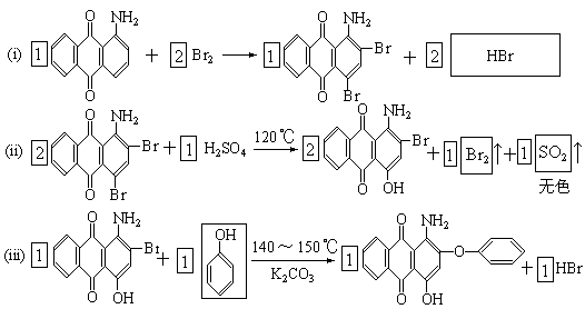 (2)从第(ii)步反应的化学原理图看,它既发生了取代反应又发生了氧化-还原反应,其中氧化剂是 ,配平后的化学方程式中共转移了 摩电子