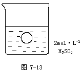 例3 在一烧杯中盛有100mL2mol·L-1的H2SO4溶液,同时有一表面光滑的塑料小球悬浮于溶液中央(如图7-13所示)。向该烧杯里缓缓注入0.4 mol·L-1的 Ba(OH)2溶液至恰好完全反应,在此实验过程中: