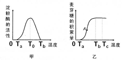 C.图乙中Tb至Tc的曲线表明随温度的升高,麦芽糖的积累量不再上升,酶的活性已达