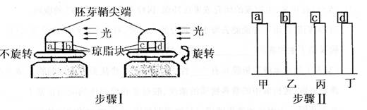 (2)实验步骤I中旋转琼脂块和胚芽鞘尖端的目的是 。如果不采用旋转的方法,还可以用什么方法来研究? 。