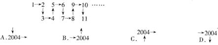 9.把正整数按下图所示的规律排序,则从2003到2005的箭头方向依次为